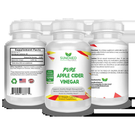 Pure Apple Cider Vinegar - 1250Mg Natural Detox Cleanse, Appetite Suppressant & Bloating Relief, Supports Blood Sugar & Immune System, Assists Weight Loss and Digestion, Fat Burner